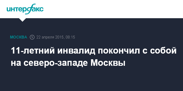 11-летний инвалид покончил с собой на северо-западе Москвы