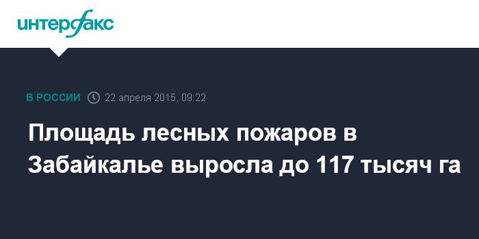 Москва. 22 апреля. INTERFAX.RU - ФБУ "Авиалесоохрана" на 00:00 среды зарегистрировал в Забайкальском крае 41 лесной пожар на общей площади 117 тыс. га, сообщает пресс-служба ведомства.