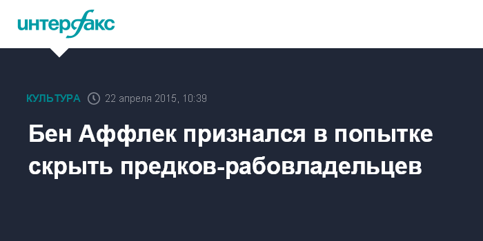 Москва. 22 апреля. INTERFAX.RU - Американский актер Бен Аффлек признался, что действительно пытался скрыть информацию о своих предках, которые были рабовладельцами, сообщает Variety.
