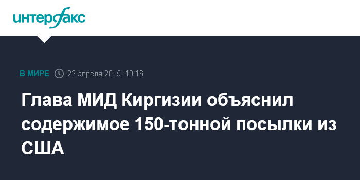 Глава МИД Киргизии объяснил содержимое 150-тонной посылки из США