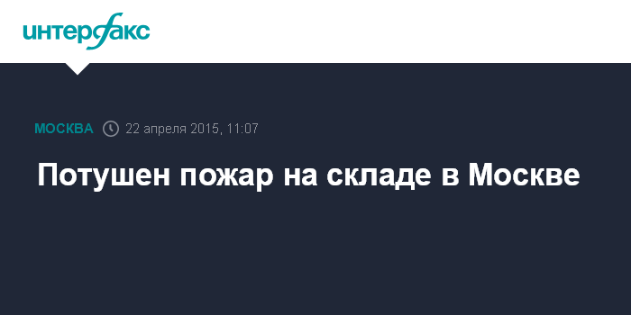 Москва. 22 апреля. INTERFAX.RU - Пожар на складе, расположенном на севере столицы, потушен, сообщает в среду на своем сайте ГУ МЧС по Москве.