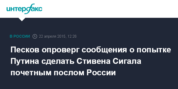 При этом он отметил, что Сигал "действительно испытывает глубокую симпатию к нашей стране, действительно, он неоднократно встречался и общался с президентом, и у них добрые отношения".