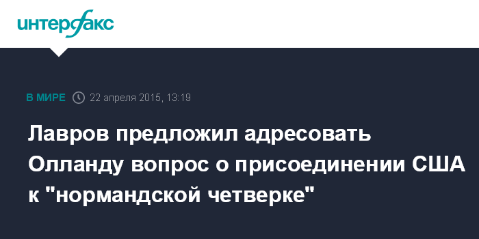 Москва. 22 апреля. INTERFAX.RU - Вопрос об участии американской стороны в "нормандском формате" по Украине должен решать президент Франции Франсуа Олланд, который и инициировал этот формат, заявил глава российского МИД Сергей Лавров.