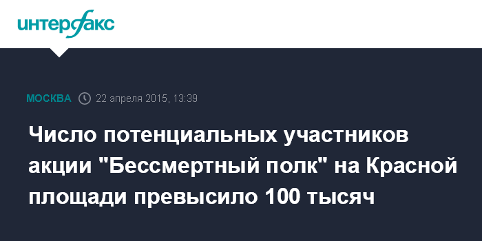 Число потенциальных участников акции "Бессмертный полк" на Красной площади превысило 100 тысяч