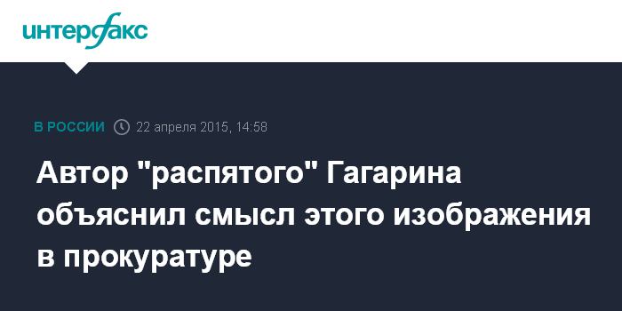 Москва. 22 апреля. INTERFAX.RU - Пермский художник Александр Жунев, создавший граффити с "распятым" космонавтом Юрием Гагариным, в среду объяснил сотрудникам прокуратуры, в чем заключался замысел его произведения.