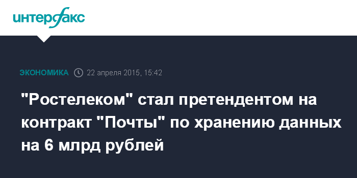 "Ростелеком" стал претендентом на контракт "Почты" по хранению данных на 6 млрд рублей