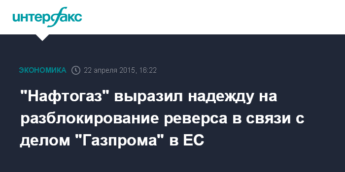 Москва. 22 апреля. INTERFAX.RU – "Нафтогаз Украины" рассчитывает, что уведомление о претензиях Еврокомиссии к "Газпрому", который подозревается Брюсселем в злоупотреблении доминирующим положением на европейском рынке газа, будет способствовать разблокированию виртуального реверса.