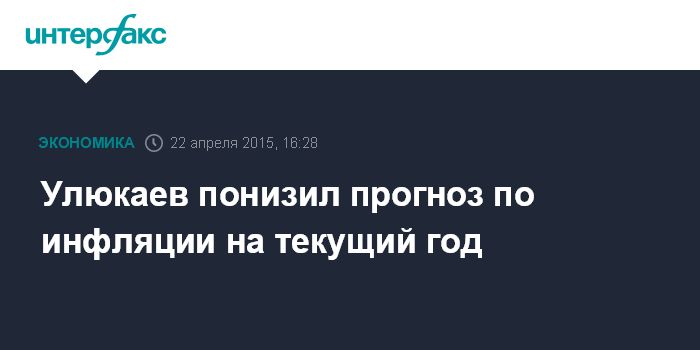 Москва. 22 апреля. INTERFAX.RU – Минэкономразвития в новом уточненном прогнозе понизило ожидания по инфляции на 2015 год с 12,2% до 11,9%, а в среднегодовом значении – с 16% до 15,7%, заявил журналистам глава Минэкономразвития Алексей Улюкаев в среду в Анталии в кулуарах российско-турецкого форума.