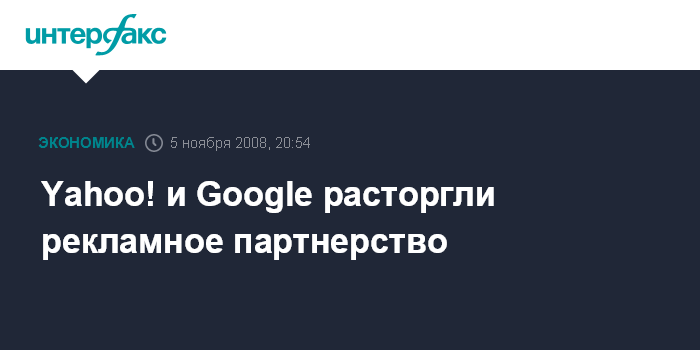 Москва. 5 ноября. INTERFAX.RU - Yahoo! и Google разорвали соглашение о совместной рекламе после того, как Минюст США уведомил компании о намерении подать антимонопольный иск с целью заблокировать сделку.