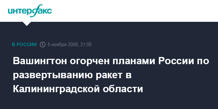 Вашингтон огорчен планами России по развертыванию ракет в Калининградской области