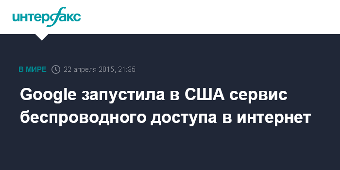 Москва. 22 апреля. INTERFAX.RU - Интернет-гигант Google в среду представил на рынке США новый беспроводной сервис доступа к интернету для мобильных телефонов Project Fi. Пока сервис будет доступен только для смартфонов Google Nexus 6.