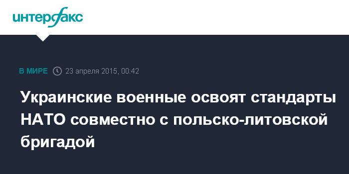 Москва. 23 апреля. INTERFAX.RU - Участие военных Украины в украинско-польско-литовской бригаде станет для них площадкой отработки современных военных технологий по стандартам НАТО, убежден секретарь СНБО Александр Турчинов.