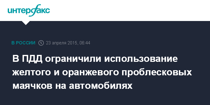 Москва. 23 апреля. INTERFAX.RU - Премьер-министр России Дмитрий Медведев подписал правительственное постановление о внесении изменений в правила дорожного движения, которые ограничивают использование транспорта с желтым и оранжевым проблесковыми маячками.