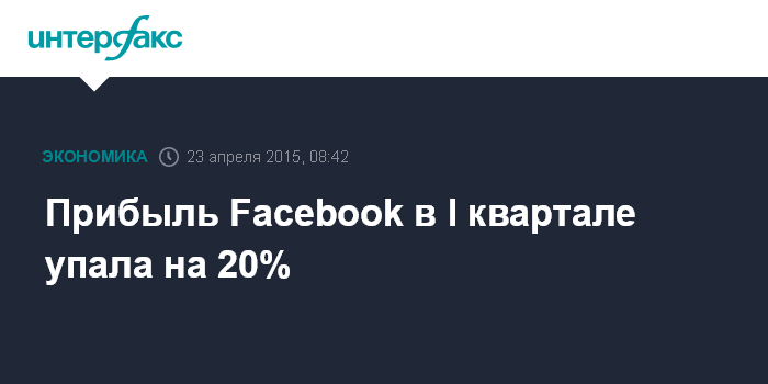 Москва. 23 апреля. INTERFAX.RU - Американская Facebook Inc., которой принадлежит крупнейшая в мире социальная сеть, сократила чистую прибыль в первом квартале 2015 года на 20%, однако результат превысил ожидания рынка. Вместе с тем выручка, подскочившая почти на 42%, оказалась слабее консенсус-прогноза.