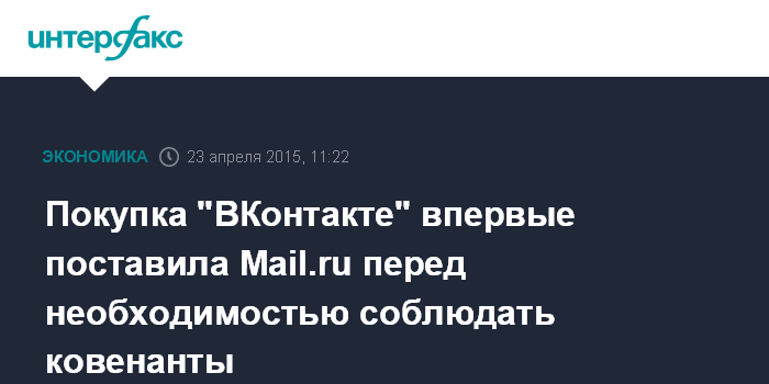 Покупка "ВКонтакте" впервые поставила Mail.ru перед необходимостью соблюдать ковенанты