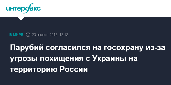 Парубий согласился на госохрану из-за угрозы похищения с Украины на территорию России