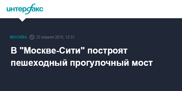 Москва. 23 апреля. INTERFAX.RU - На территории "Москва-Сити" планируется построить пешеходный прогулочный мост, сообщила журналистам начальник управления формирования и реализации инвестиционных программ Москомстройинвеста Наталия Лисюкова.