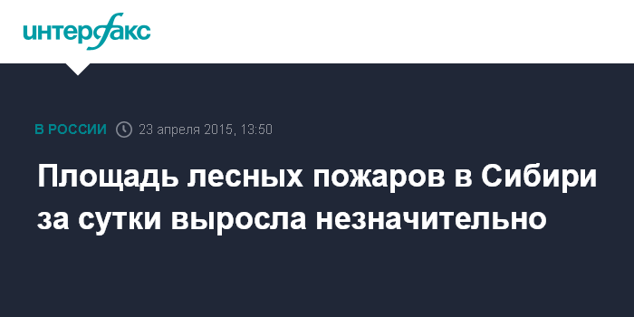 Москва. 23 апреля. INTERFAX.RU - Площадь лесных пожаров в Сибири, по данным на четверг, составляет 118 тыс. 928,5 га, зарегистрировано 53 лесных пожара, сообщает департамент лесного хозяйства по Сибирскому федеральному округу.