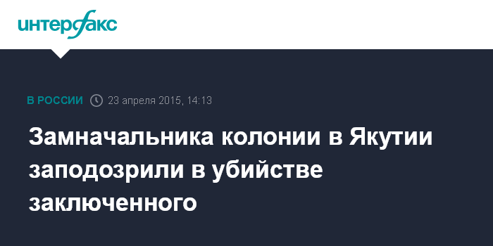 Москва. 23 апреля. INTERFAX.RU - Заместитель начальника исправительной колонии №7 в Якутии задержан в рамках расследования дела об убийстве заключенного, сообщает в четверг пресс-служба регионального СУ СКР.