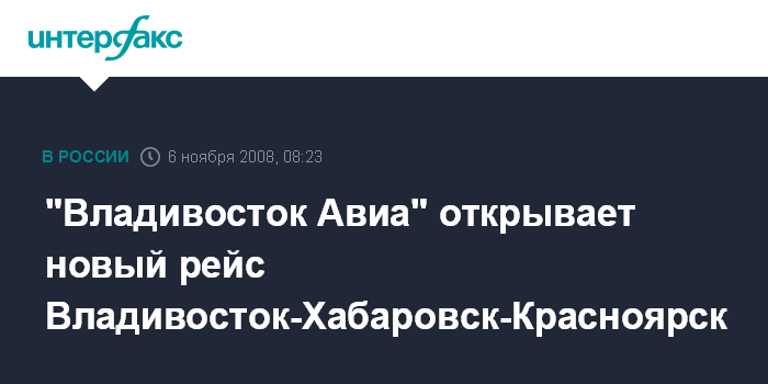 "Владивосток Авиа" открывает новый рейс Владивосток-Хабаровск-Красноярск