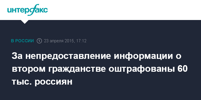 За непредоставление информации о втором гражданстве оштрафованы 60 тыс. россиян