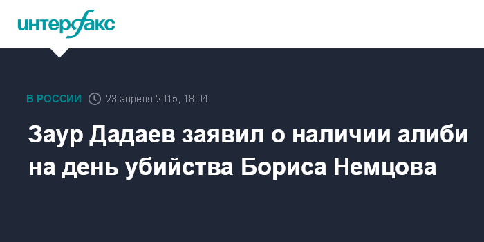Москва. 23 апреля. INTERFAX.RU - Предполагаемый исполнитель убийства оппозиционного политики Бориса Немцова Заур Дадаев заявил о наличии алиби на момент преступления.