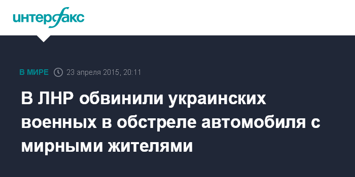 Москва. 23 апреля. INTERFAX.RU - У въезда в станицу Луганская в четверг вечером со стороны украинских позиций был обстрелян автомобиль с мирными жителями, сообщает Луганский информационный центр со ссылкой на представителя Народной милиции самопровозглашенной ЛНР.