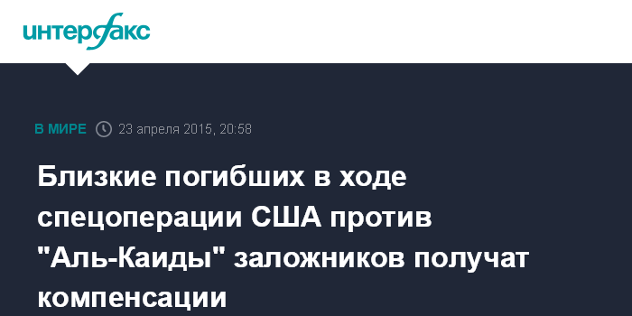 Близкие погибших в ходе спецоперации США против "Аль-Каиды" заложников получат компенсации