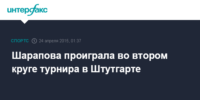 Москва. 24 апреля. INTERFAX.RU - Российская теннисистка Мария Шарапова потерпела неудачу в матча второго круга турнира Porsche Tennis Grand Prix в Штутгарте.