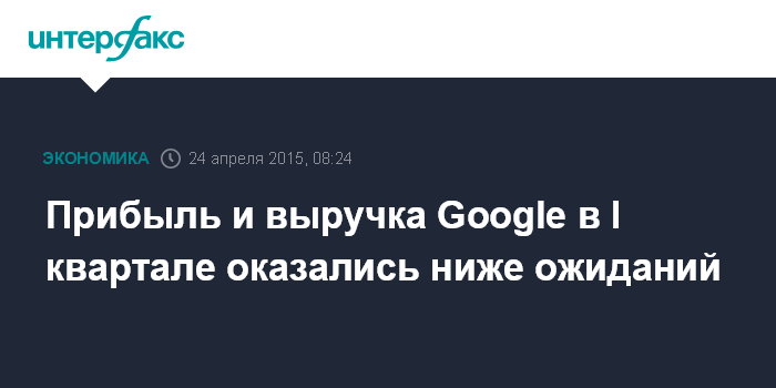 Москва. 24 апреля. INTERFAX.RU - Крупнейшая в мире интернет-корпорация Google Inc. увеличила чистую прибыль в первом квартале 2015 года на 4% на фоне роста выручки на 12%, однако результаты не оправдали ожиданий рынка уже шестой квартал подряд.