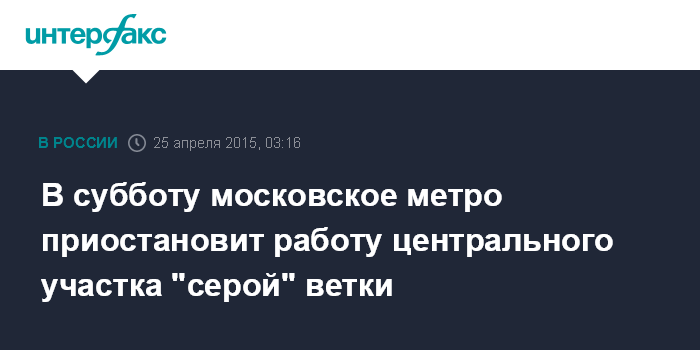 В субботу московское метро приостановит работу центрального участка "серой" ветки