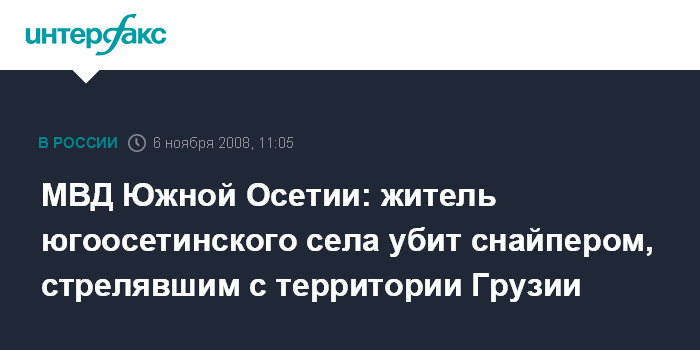 МВД Южной Осетии: житель югоосетинского села убит снайпером, стрелявшим с территории Грузии
