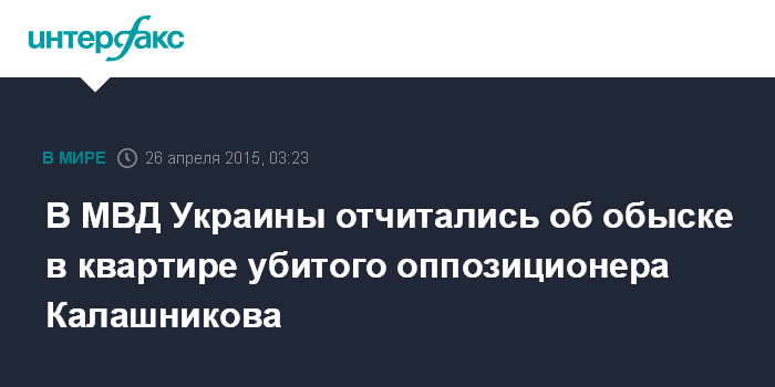 24 апреля в рамках расследования уголовного производства по факту убийства в квартире покойного экс-депутата Украины Калашникова правоохранители проводили обыск. В ГУ МВД Украины в Киеве подчеркнули, что следственные действия проводятся на основании постановления районного суда.