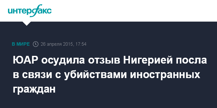 ЮАР осудила отзыв Нигерией посла в связи с убийствами иностранных граждан