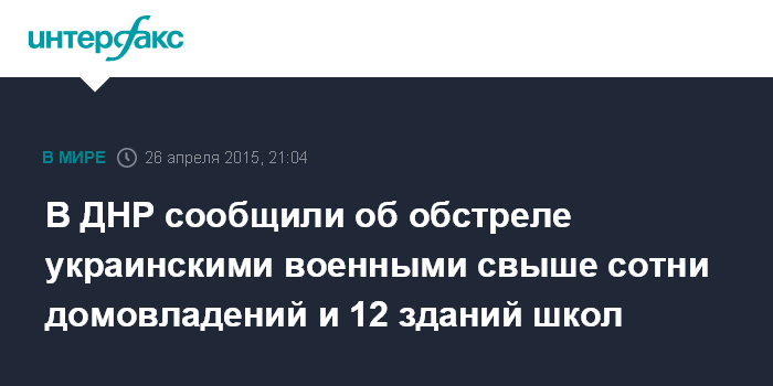 В ДНР сообщили об обстреле украинскими военными свыше сотни домовладений и 12 зданий школ