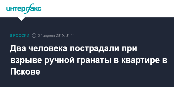 "Около 00.00 мск понедельника поступило сообщение о взрыве в одной из квартир в доме 48 на улице Новоселов в Пскове. По предварительной версии, в квартире взорвалась ручная граната", - рассказал сотрудник пресс-службы полиции.
