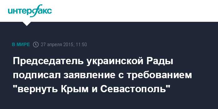 Председатель украинской Рады подписал заявление с требованием "вернуть Крым и Севастополь"