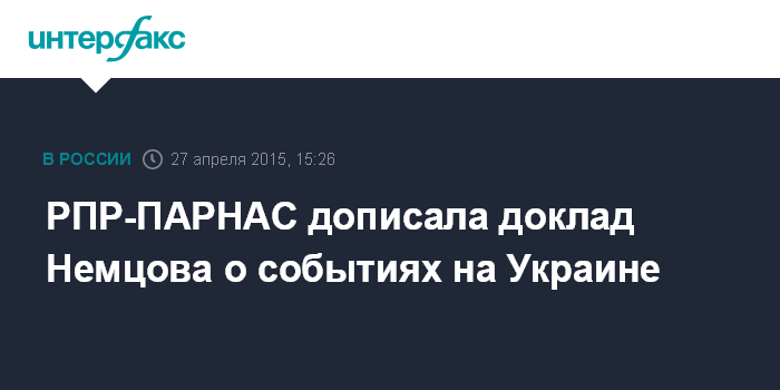 Москва. 27 апреля. INTERFAX.RU - В РПР-ПАРНАС сообщили о завершении написания доклада, посвященного событиям на Украине, над которым работал убитый сопредседатель партии Борис Немцов.