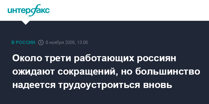 Около трети работающих россиян ожидают сокращений, но большинство надеется трудоустроиться вновь