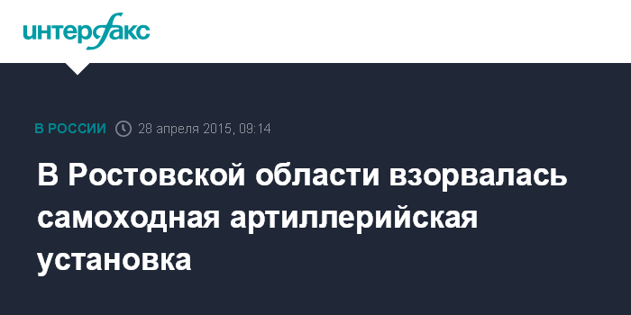 Москва. 28 апреля. INTERFAX.RU – В районе населенного пункта Кузьминки Ростовской области взорвалась самоходная артиллерийская установка, сообщил "Интерфаксу" начальник пресс-службы Южного военного округа полковник Игорь Горбуль.