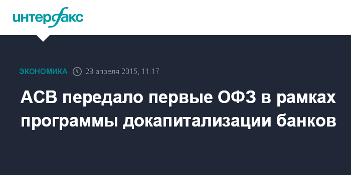 АСВ передало первые ОФЗ в рамках программы докапитализации банков
