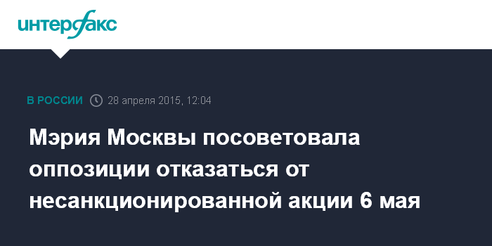 Москва. 28 апреля. INTERFAX.RU - Власти Москвы предостерегли оппозицию от проведения несогласованных акций 6 мая и отметили, что в случае неповиновения к нарушителям будут применены соответствующие меры.