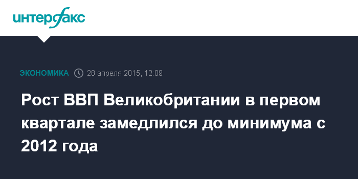 Повышение британской экономики относительно января-марта 2014 года составило 2,4%, что является минимальным ростом более чем за год. Аналитики в среднем оценивали увеличение первого показателя на 0,5%, второго - на 2,6%.