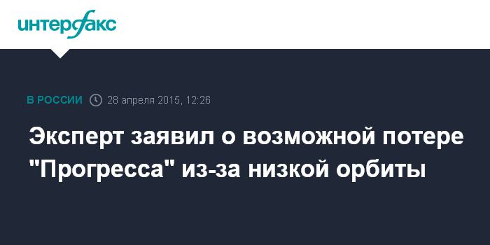 Москва. 28 апреля. INTERFAX.RU - Грузовой космический корабль "Прогресс М-27М" может быть потерян, если в ближайшие часы специалистам ЦУП не удастся установить с ним устойчивую связь и поднять орбиту до расчетной, сообщил "Интерфаксу" эксперт, пожелавший остаться неназванным.
