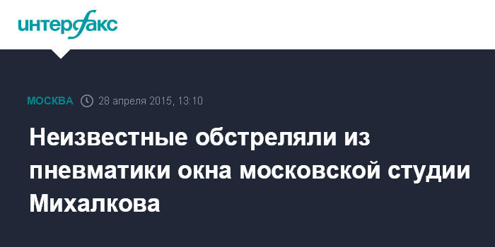 Москва. 28 апреля. INTERFAX.RU - Неизвестные обстреляли из пневматического оружия окна студии "ТриТэ" Никиты Михалкова в центре столицы, сообщил "Интерфаксу" во вторник источник в правоохранительных органах.