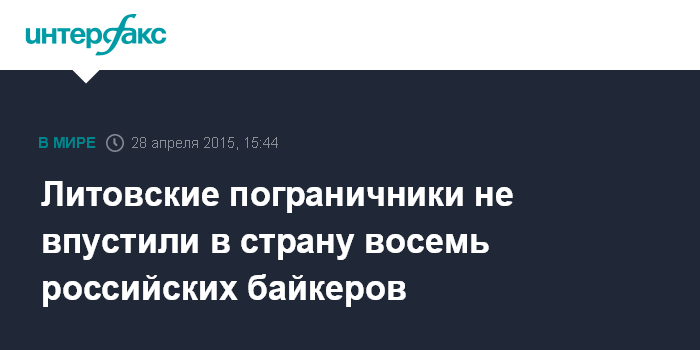 Москва. 28 апреля. INTERFAX.RU - Сотрудники погранохраны Литвы за минувшие сутки не впустили в страну восемь российских байкеров, поскольку у них не было необходимых документов, сообщила Служба охраны госграницы Литвы (СОГГЛ).