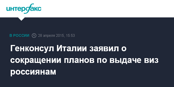 Генконсул Италии заявил о сокращении планов по выдаче виз россиянам