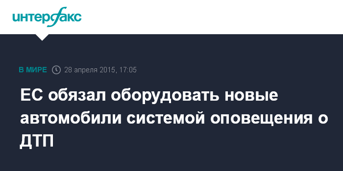 ЕС обязал оборудовать новые автомобили системой оповещения о ДТП