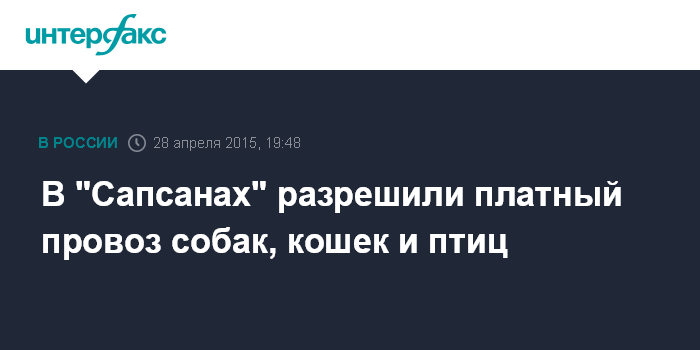 "28 апреля в билетных кассах открылась продажа билетов с услугой по провозу мелких домашних животных на специализированных местах во всех скоростных поездах "Сапсан", отправляющихся с 12 июня 2015 года", - говорится в сообщении.