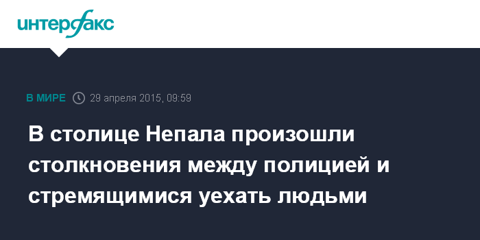Москва. 29 апреля. INTERFAX.RU - Полиции столицы Непала Катманду пришлось вмешаться для сдерживания толпы людей, которые не могут уехать из города, сообщают в среду западные СМИ.